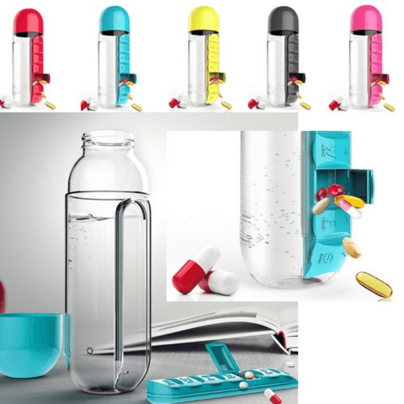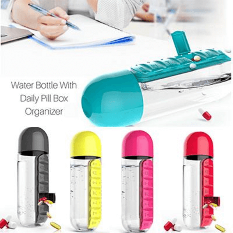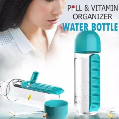 2 in 1 Usage Weekly Medicine/Vitamins Pill Box Organising Water Bottle